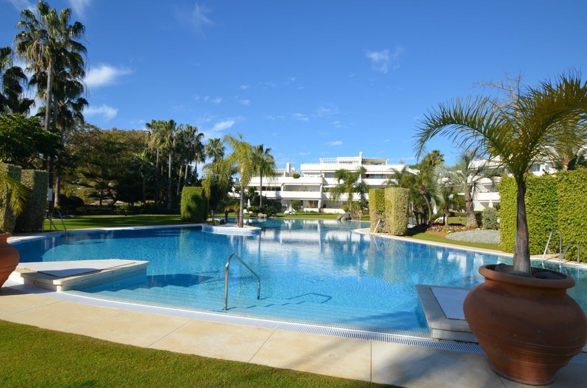 FIRST LINE GOLF apartment next to the prestigious golf club Las Brisas.The property is located in a well mantained urbanization with 24 hours sercurity in a gated community, enjoying the sun from morning to evening and the beautiful views over the garden and swimming pool, one indoor pool heated, gym, sauna, hamman, under ground garage and store rooms included.