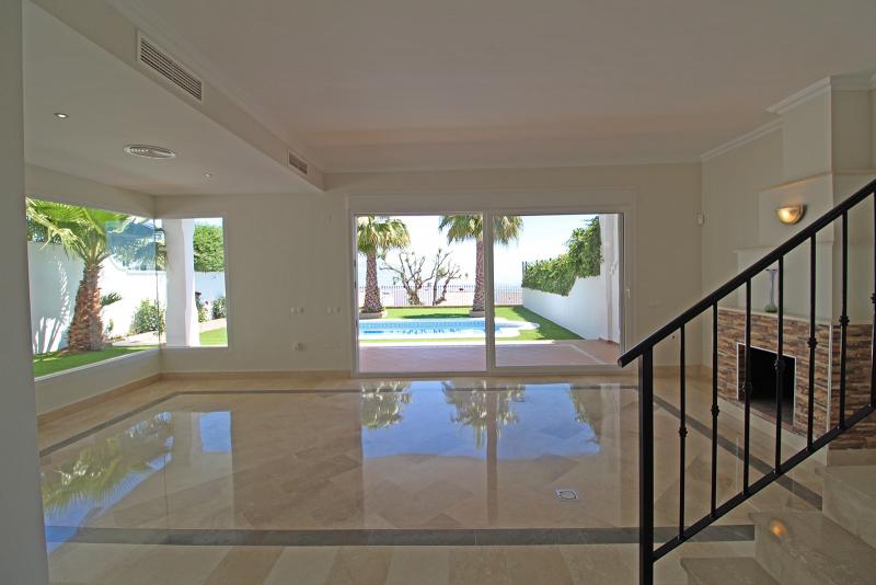 Semi-detached house located in one of the best urbanization of La Mairena for its exclusivity and elevated position, which gives it a fantastic sea view. It has 3 bedrooms (with the possibility of doing 1 more), all of them with en suite bathroom, 2 private garage spaces and own pool.