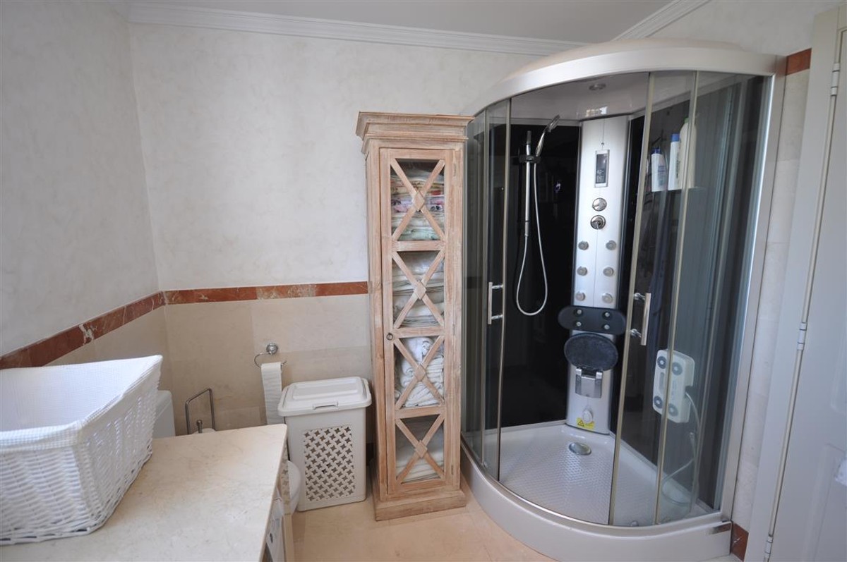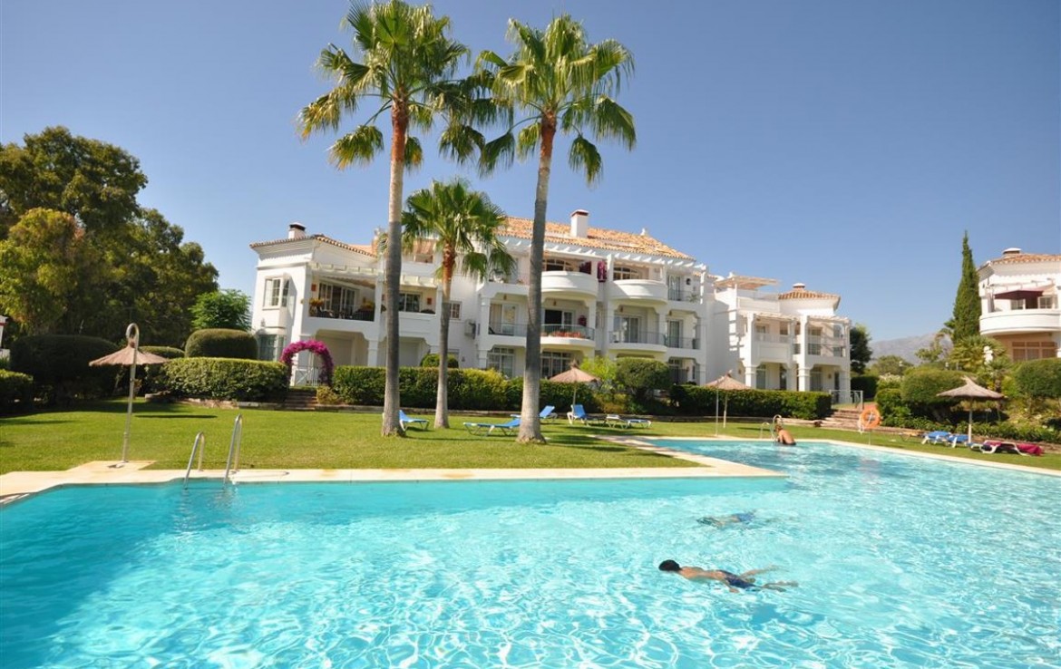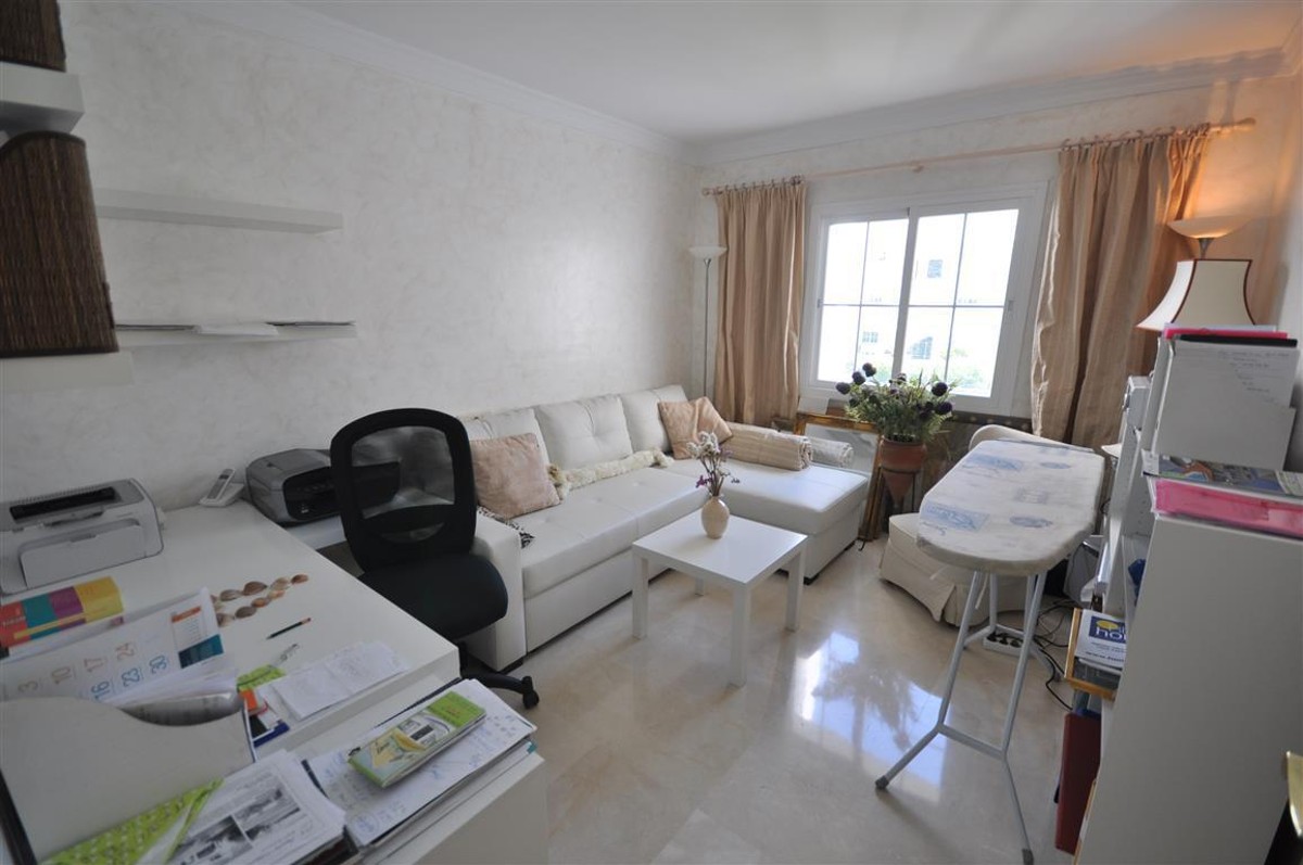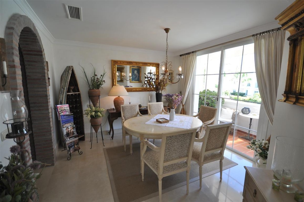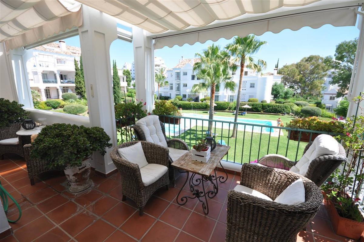 Magnificent corner duplex penthouse apartment. Very light and spacious, enjoying the sun from morning to evening and the beautiful views over the garden and swimming pool. The apartment has been completely reformed using good quality materials combined with exquisite taste. Large open plan kitchen and a spacious living room, with modern fireplace. Plenty of terrace space on the 1st floor, small bodega, 2 bedrooms and 2 bathrooms. On the 2nd level is a large master bedroom with en suite, all surronded by large terraces with shade, some of them with glass curtains. The property is located in a well mantained urbanization with 24h. security, walking distance to the town center and only a very short walk from the club house of Gualdalmina Golf. Under ground parking included.