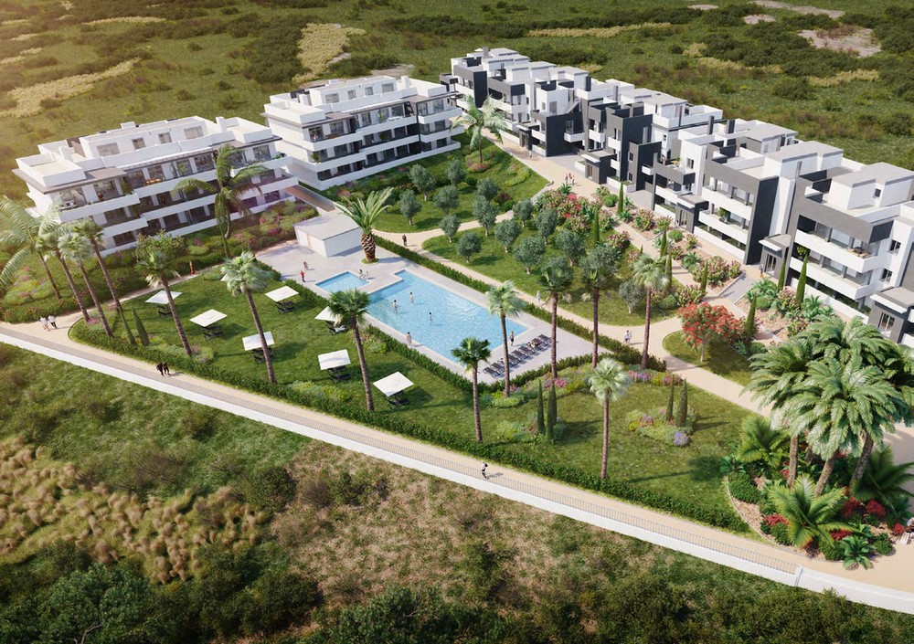 Serenity Views is a closed complex consisting of only 66 apartments of 2 and 3 bedrooms, on 3 levels, harmoniously distributed around common areas with beautiful gardens and a large swimming pool. The apartments all have beautiful terraces of 25 to 165 m2 with very nice open views towards the common garden, the mountain and the sea. The ground floor units offer a terrace and a garden, the first floor beautiful terraces ranging from 25 to 35 m2 and finally the 2nd floor apartments offer, in addition to the terrace, a beautiful solarium on the roof.
