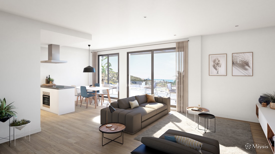 Serenity Views is a closed complex consisting of only 66 apartments of 2 and 3 bedrooms, on 3 levels, harmoniously distributed around common areas with beautiful gardens and a large swimming pool. The apartments all have beautiful terraces of 25 to 165 m2 with very nice open views towards the common garden, the mountain and the sea. The ground floor units offer a terrace and a garden, the first floor beautiful terraces ranging from 25 to 35 m2 and finally the 2nd floor apartments offer, in addition to the terrace, a beautiful solarium on the roof.