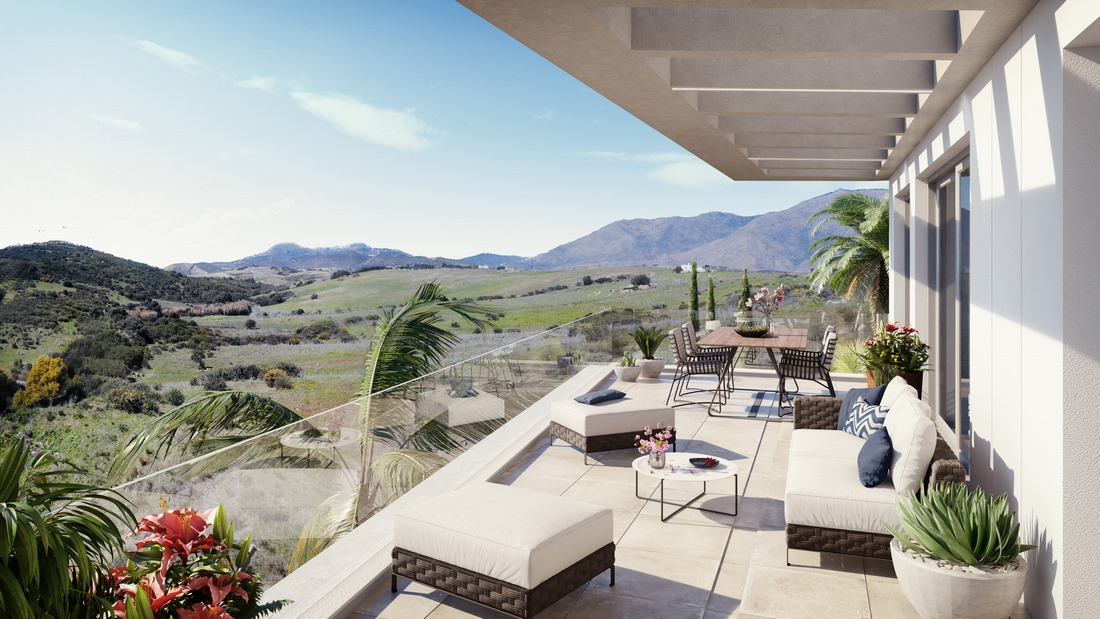 The south-south-east orientation of the majority of terraces allows you to make the most of the sun and the brightness all day long. Finca Cortesin, certainly one of the most beautiful golf courses in Costa del Sol is just a few minutes away. A chance for golfers, but also for lovers of beautiful landscapes Less than 10 minutes away, the «Puerto de la Duquesa» has the reputation of being one of the most beautiful marinas in the province of Malaga. The ideal place to enjoy all year round, the terraces, restaurants and relax in the sun.